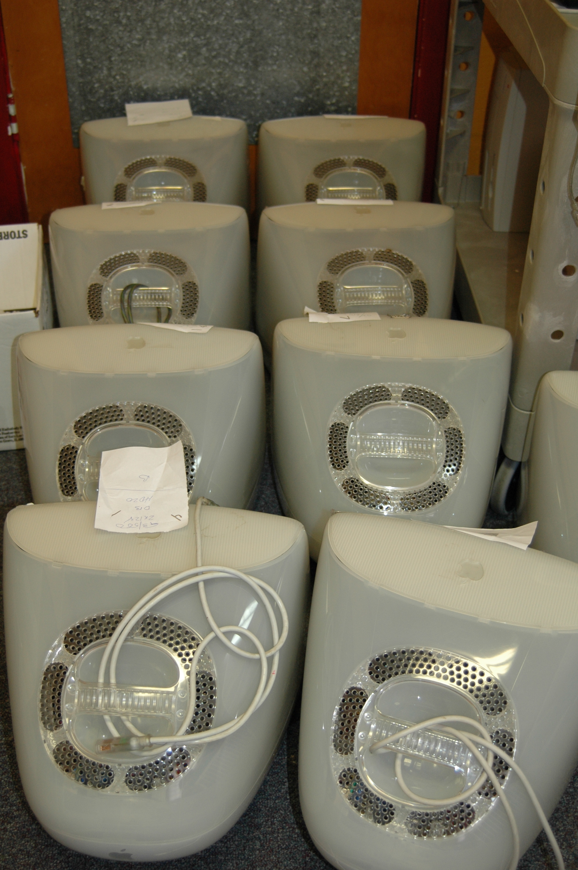 Early-on, the focus was on the Apple II – Apple’s first real success story. We tried to recycle many donations to schools that did not have any – like the two elementary schools in West Virginia in 1996.That’s a picture at left of all the computer equipment ready to be set up in a lab.
